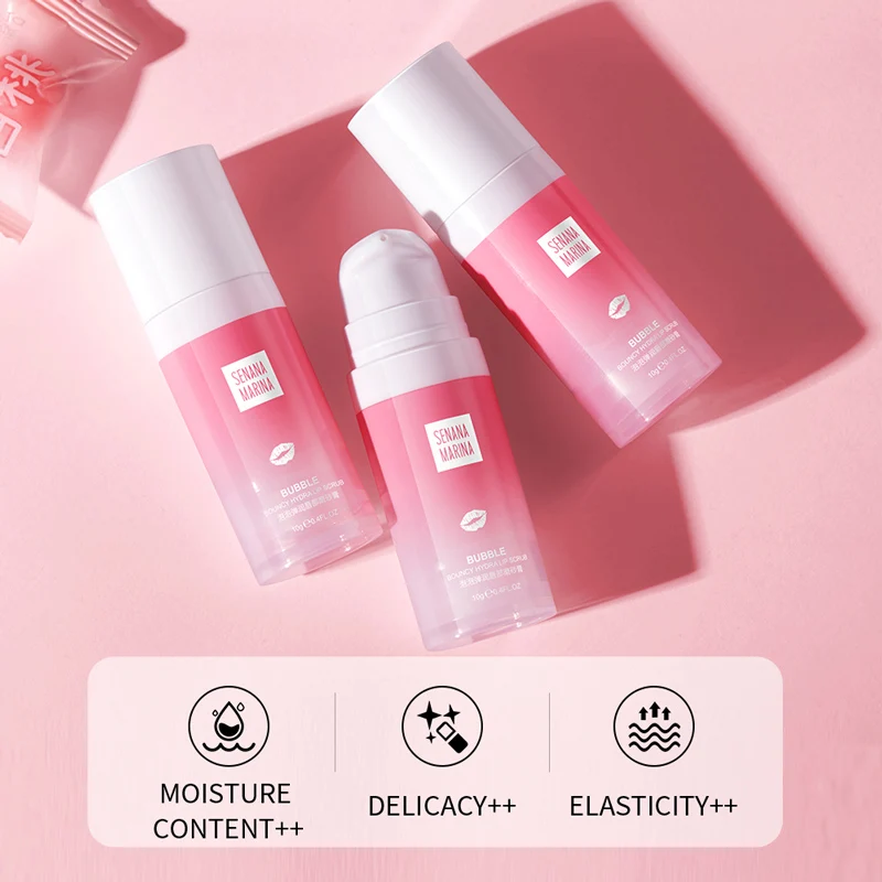 The OEM SENANA Repairing Lightening Moisturize Exfoliate Fade Lip Lines Care Bubble Scrub Cream Lip Mask incorporates cutting-edge cosmetic science to deliver comprehensive lip care benefits through its innovative formulation. The product features a unique bubble-generating mechanism that transforms upon application, creating micro-bubbles that gently lift away dead skin cells while delivering active ingredients deep into the lip tissue.
